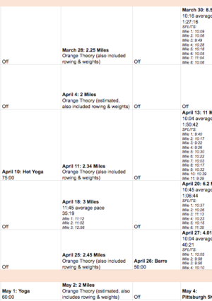 153(ish) miles. 45(ish) runs. Lots of cross-training and early (and mostly cold) mornings. Different cities in addition to Pittsburgh (Orlando, New York City, Houston, Clemson, SC, and Dallas). It's been a whirlwind four months and now training is done and it's now finally half marathon week! Here's a look at my last month of training. How I felt this month: TIRED. My schedule has been too