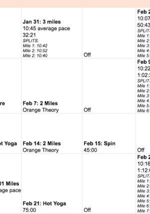 Another month down for half marathon training! February flew by and included a few more outdoor runs (slowly but surely). How I felt this month:Still good! Have a lot of energy for my runs and feel good on them, too. Which is so nice. After my last long run this past weekend (7 miles), I did feel some more soreness at the end though in the hips. What I ran this month:In February, I